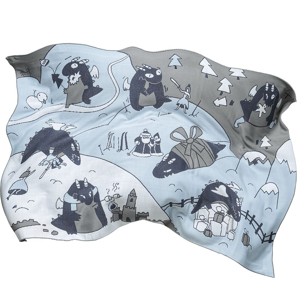 Мягкий акриловый плед Draconia показывает целое искусство сторителлинга с помощью веселого и доброго комикса! Расшифруйте картинки на пледе, — получится современная новогодняя история-наоборот.