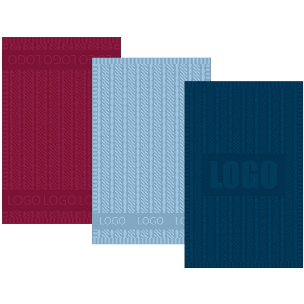 Плед с вывязанным логотипом и рельефным узором в фирменном цвете вашей компании.