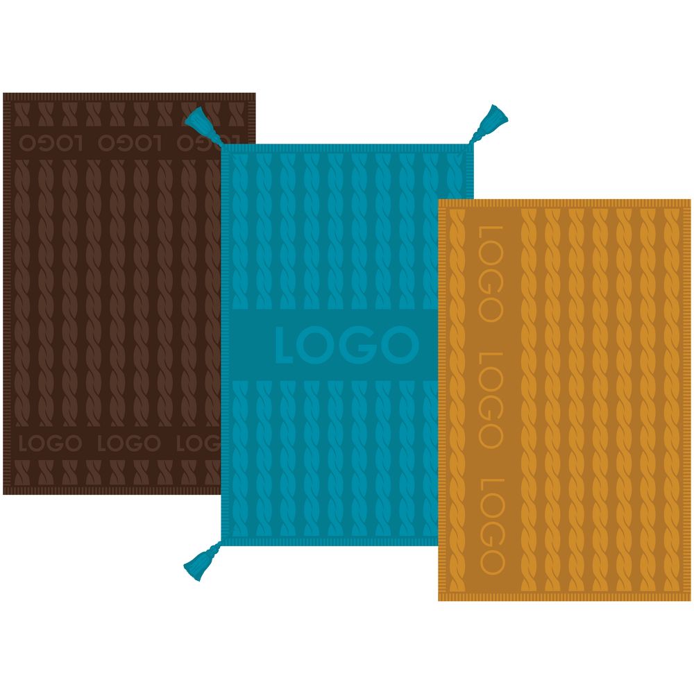 Плед с вывязанным логотипом и рельефным узором в фирменном цвете вашей компании.