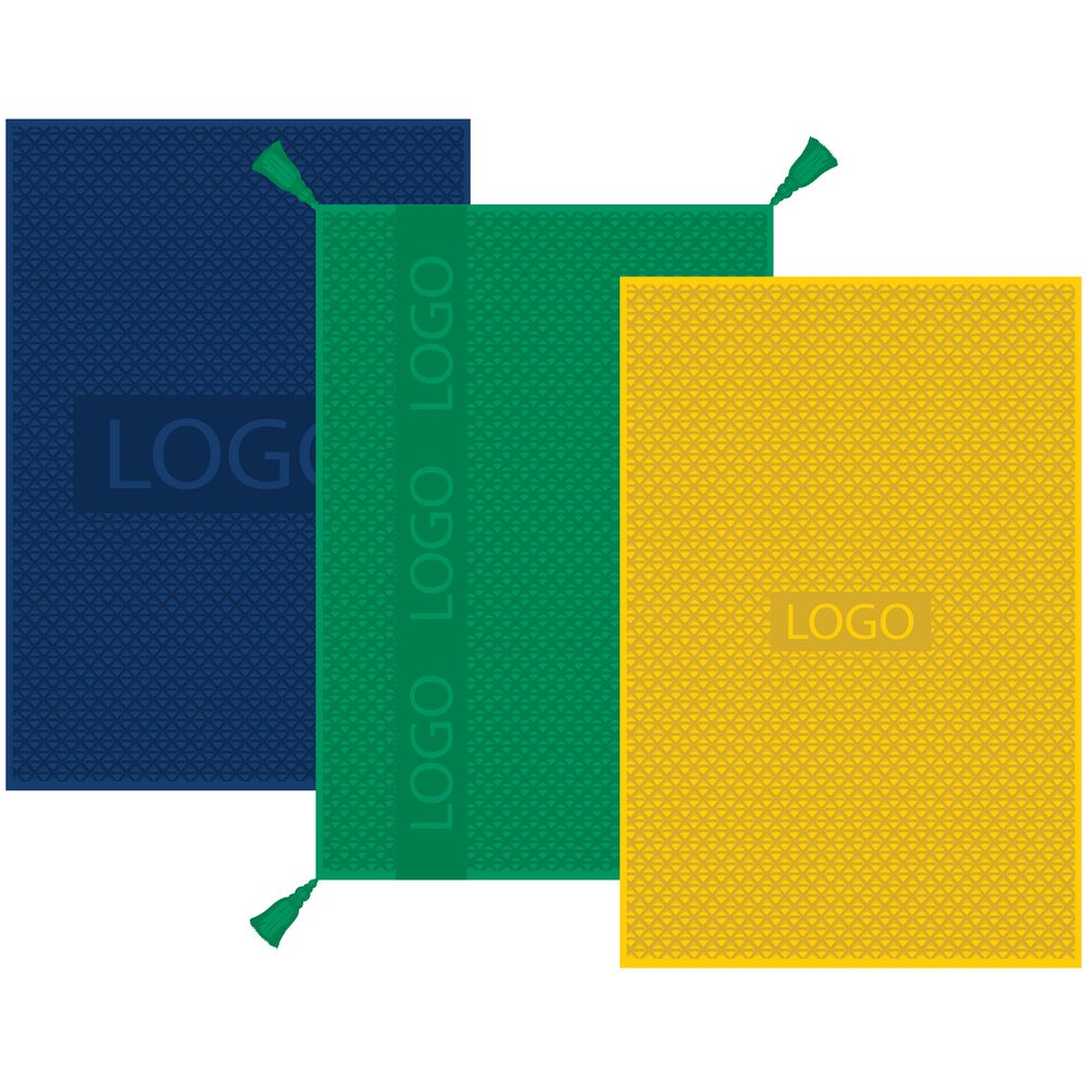 Плед с вывязанным логотипом и рельефным узором в фирменном цвете вашей компании.