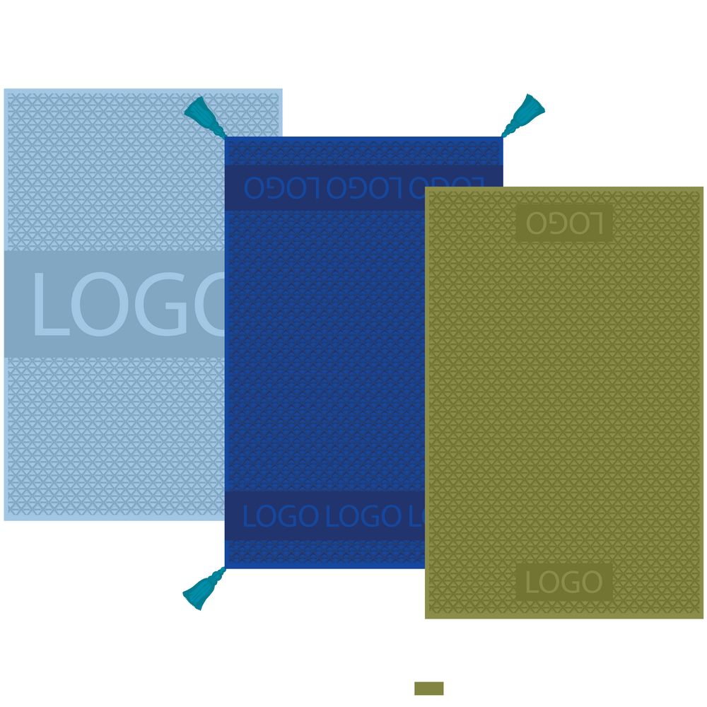 Плед с вывязанным логотипом и рельефным узором в фирменном цвете вашей компании.