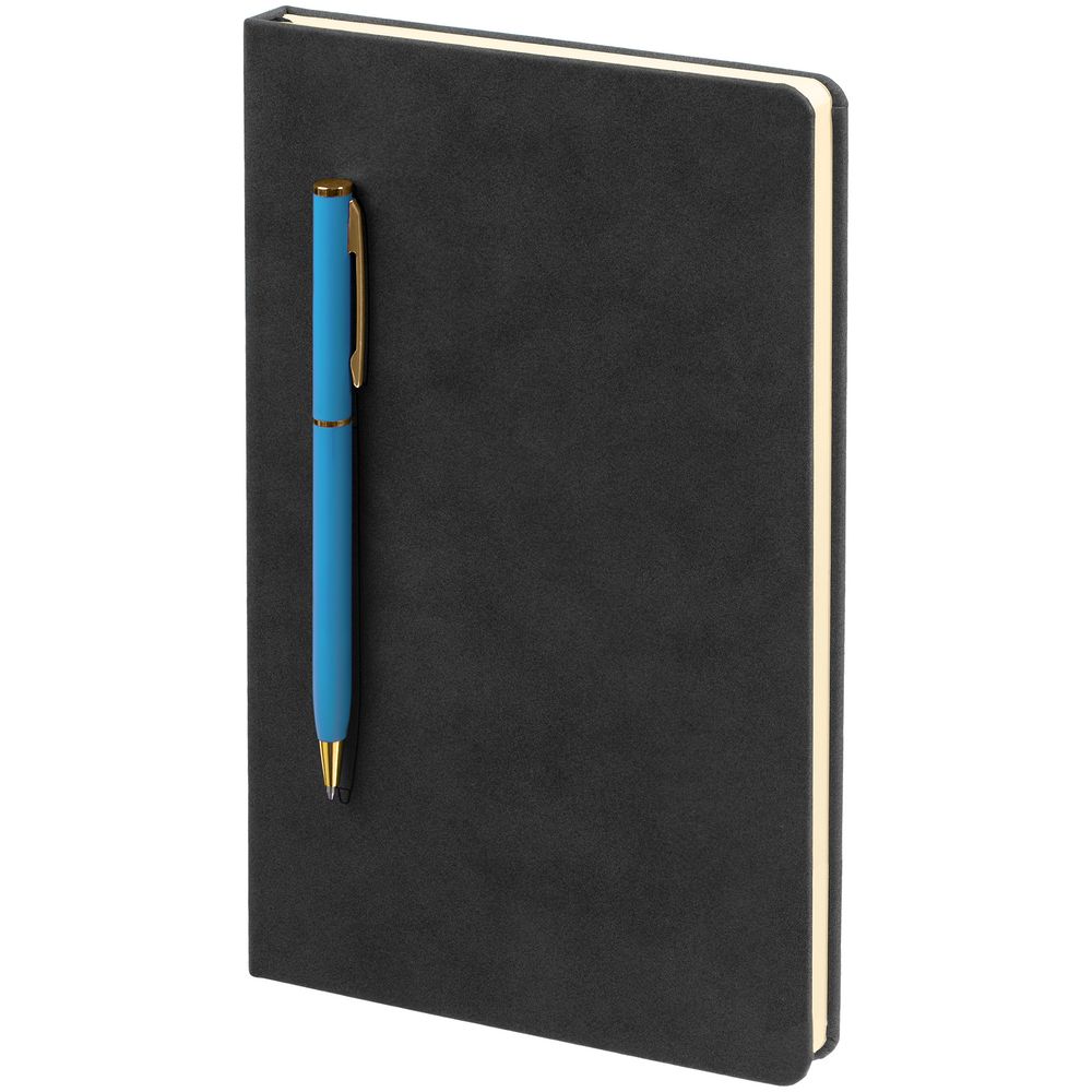 Блокнот Magnet Gold с ручкой, черный с голубым
