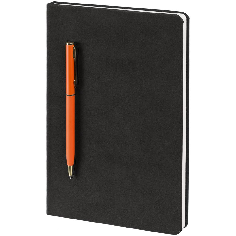 Блокнот Magnet Gold с ручкой, черный с оранжевым