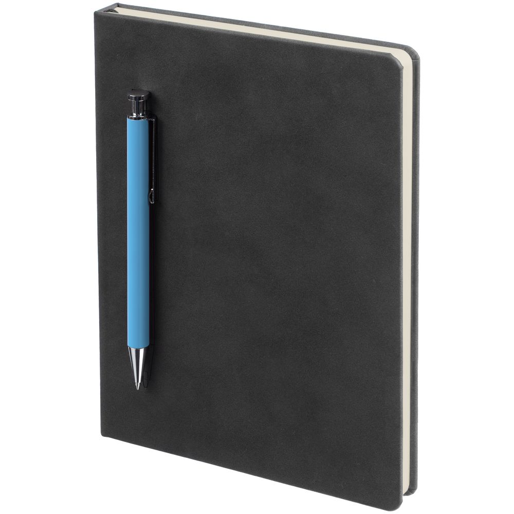 Ежедневник в твердой обложке выполненной из материала Nubuck, черный, дополнен цветным ляссе и магнитом удерживающим ручку.