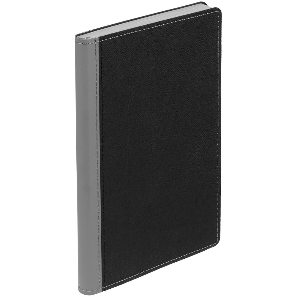 Ежедневник с гибкой обложкой выполнен из материала Nice Touch, черный АА и Soft Touch, серый СС, дополнен ляссе серого цвета. Блок 951, без календарной сетки: