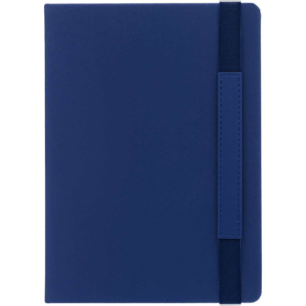 Ежедневник с твердой обложкой, выполнен из материала Nice Touch, синий, дополнен резинкой с лейблом из материала Soft Touch и ляссе в цвет обложки. Блок 985, без календарной сетки: