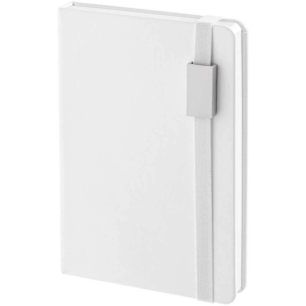 Ежедневник с твердой обложкой, выполнен из материала Scala print, белый BB, дополнен резинкой с металлическим шильдом и ляссе в цвет обложки. Блок 212, недатированный, без календарной сетки:
