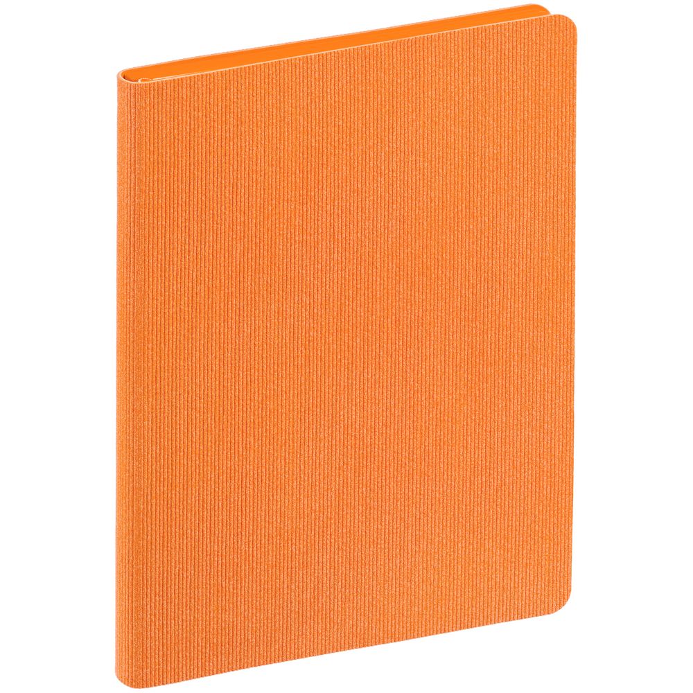 Ежедневник с гибкой обложкой, выполнен из материала Corduroy, оранжевый ОО, с фактурой вельвета и Latte, оранжевый ОО, дополнен ляссе оранжевого цвета.