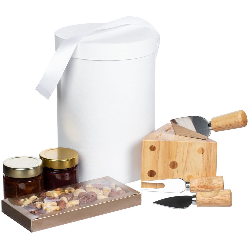 Материал: коробка - переплетный картон; конфитюр, соус - стекло; набор для сыра - дерево, нержавеющая сталь