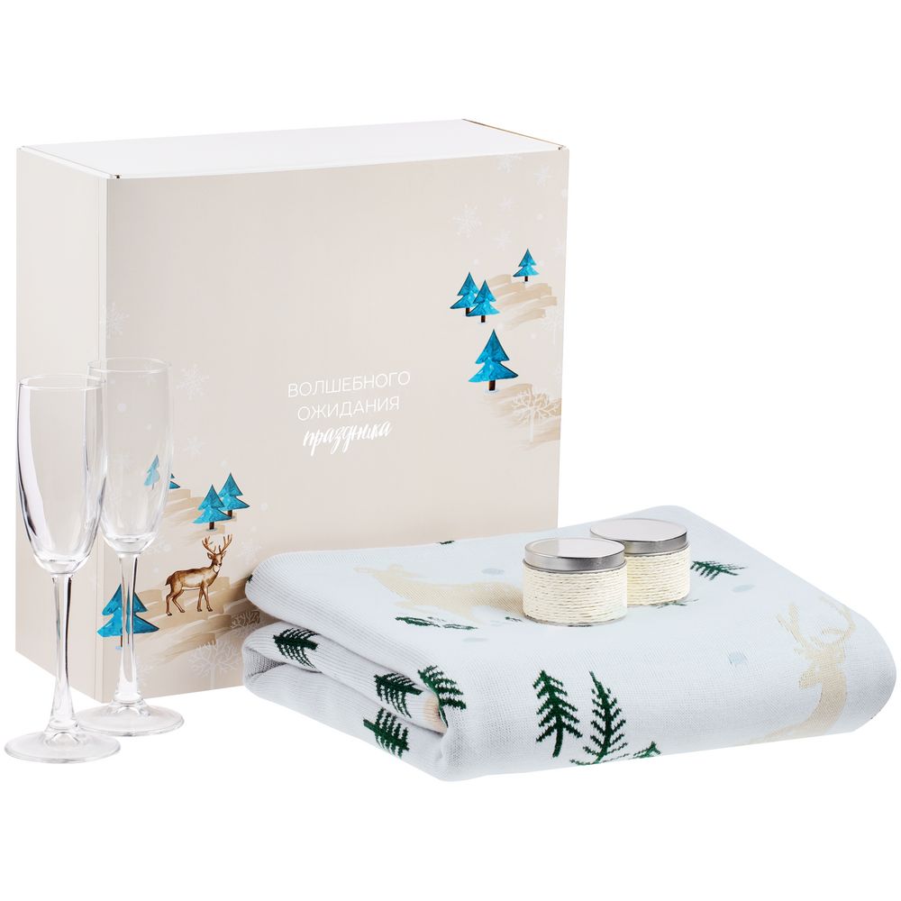 Нежный набор для уютного вечера — плед, свечи и любимый напиток в изящных бокалах. Не обязательно ждать новогодних карнавалов, чтобы почувствовать праздничное настроение.