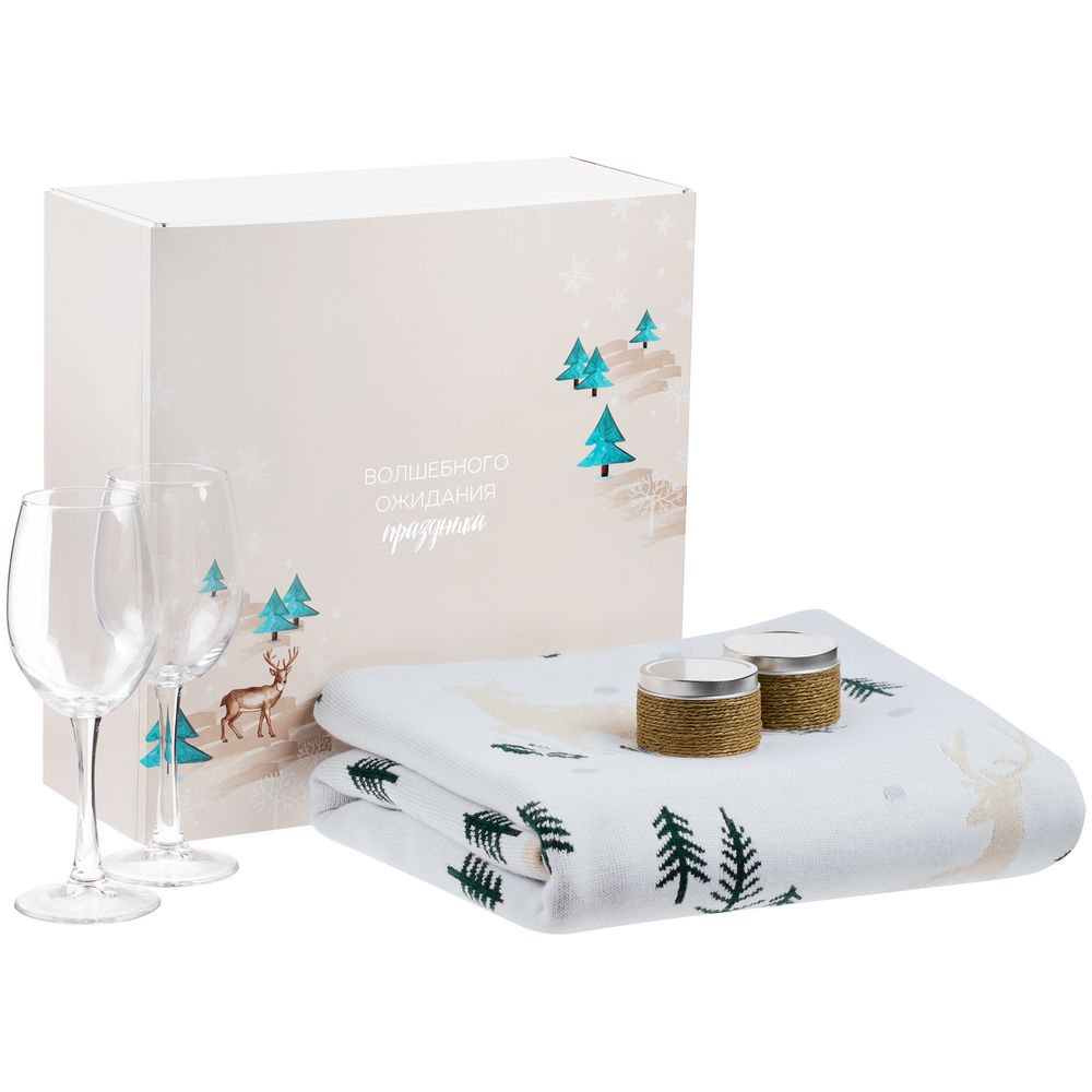 Нежный набор для уютного вечера — плед, свечи и любимый напиток в изящных бокалах. Не обязательно ждать новогодних карнавалов, чтобы почувствовать праздничное настроение.