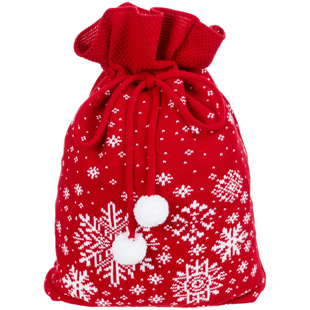 Вязаная сумка со снежным орнаментом подойдет как для упаковки новогодних подарков, так и для использования в качестве рюкзака.