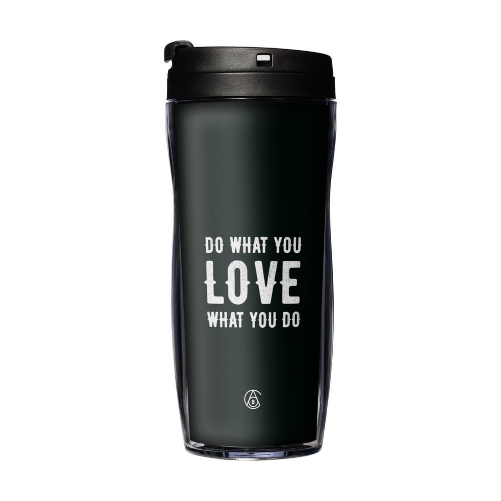 Do what you love, love what you do («Делай то, что ты любишь, люби то, что ты делаешь») — идеальная формула отношения к себе и своей работе! Емкость 350 мл. Двухслойная конструкция из пластика внутри и снаружи. Герметичная завинчивающаяся крышка с откидным клапаном для питья.