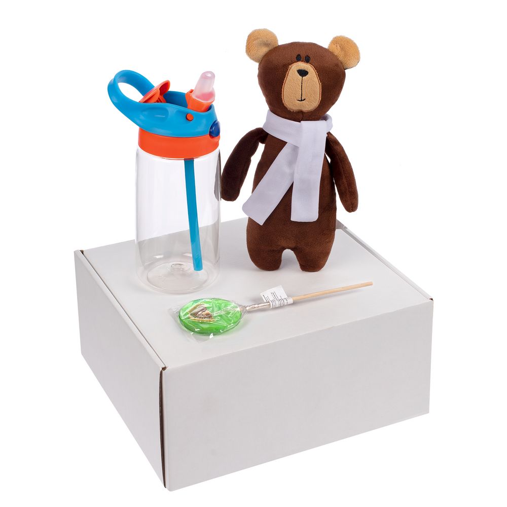 Материал: бутылка - пластик, полипропилен; игрушка - велюр, набивка, шарфик - полиэстер 100%; коробка - микрогофрокартон, плотность 385 г/м²