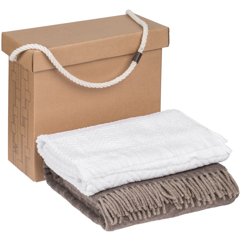 Материал: плед - шерсть 100%; полотенце - хлопок 100%; коробка - гофрокартон