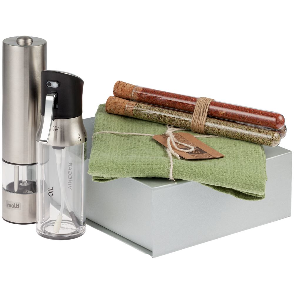 Материал: мельница, дозатор - нержавеющая сталь; специи - стекло; набор полотенец - лен, 73%, хлопок 27%