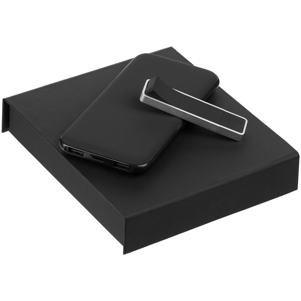 Материал: аккумулятор - пластик, покрытие софт-тач; флешка - металл, пластик, покрытие софт-тач; переплетный картон