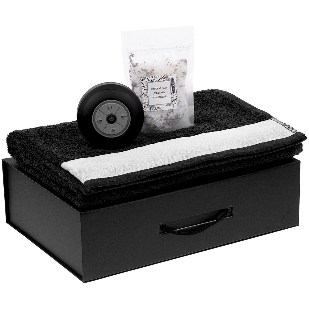 Материал: колонка - пластик, покрытие софт-тач; полотенце - хлопок 100%, плотность 380 г/м²; коробка - переплетный картон