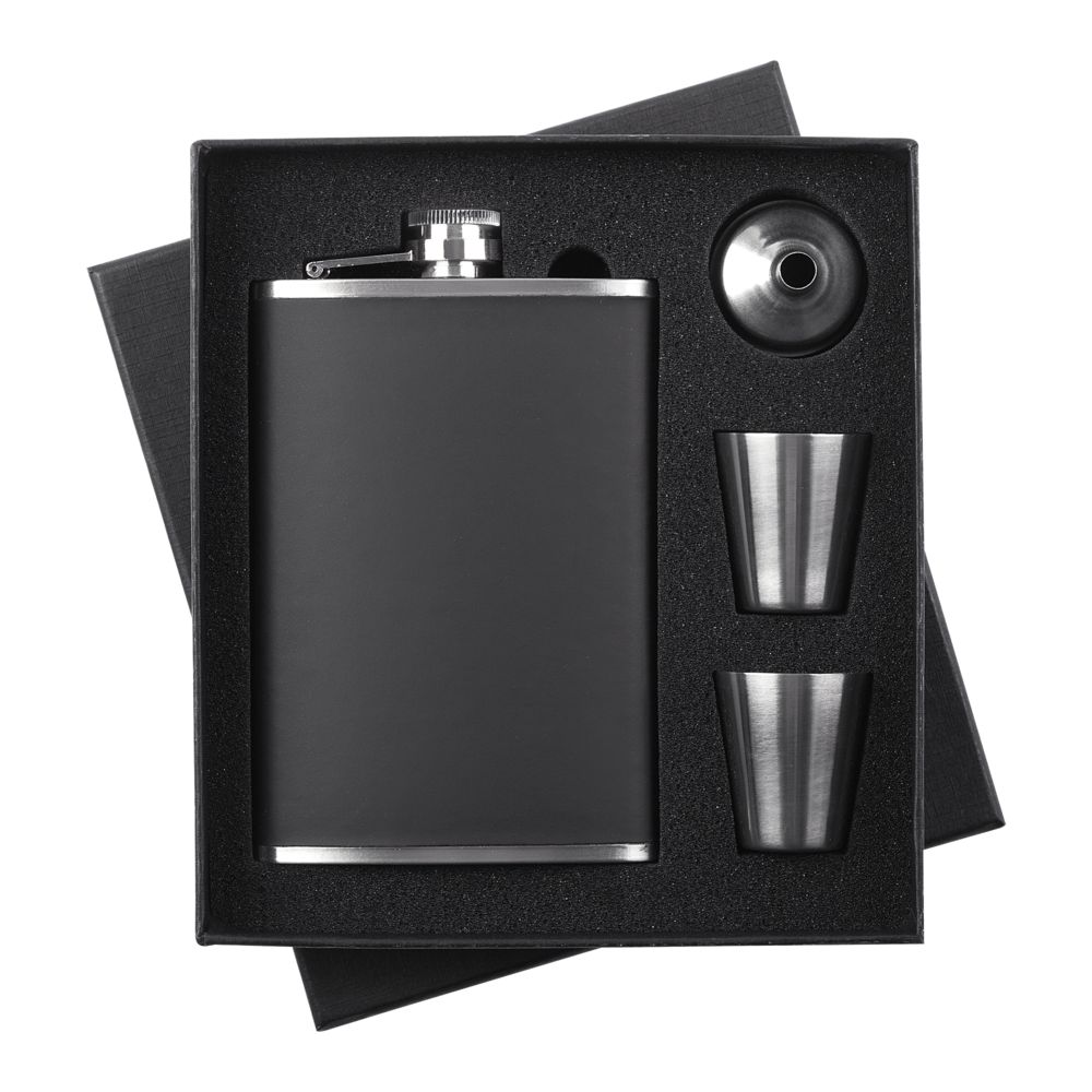 Размер: фляжка: 9,5х14,8х2,1 см; стопка: диаметр 3,6 см, высота 4,2 см; воронка: диаметр 3,6 см, высота 2,3 см; упаковка: 16,8х18,8х4,3 см