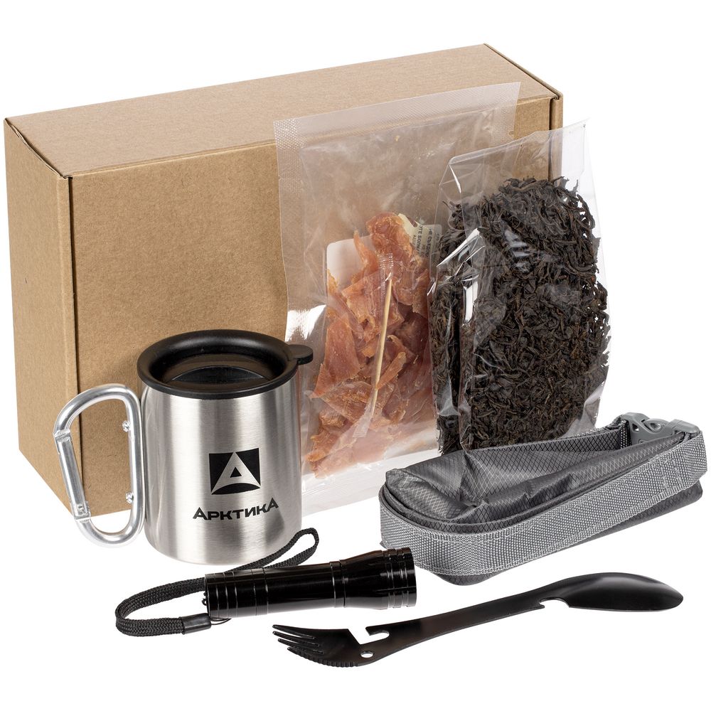 Материал: кружка - металл; столовый прибор - нержавеющая сталь; мешок - полиуретан, нейлон; фонарик - алюминий; коробка - микрогофрокартон