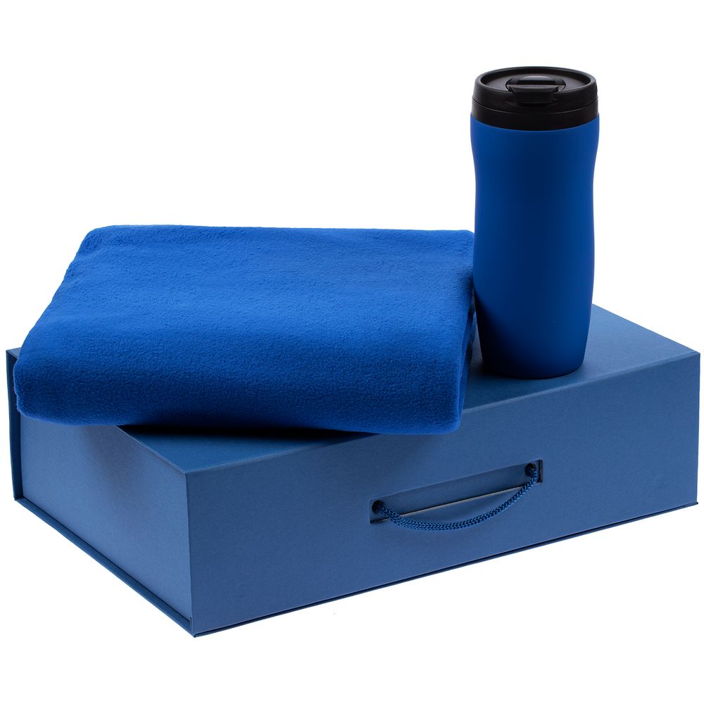 Материал: термостакан - пластик, крышка, внутренняя колба; нержавеющая сталь, корпус; покрытие софт-тач; плед - флис, плотность 180 г/м²; коробка - переплетный картон; наполнитель - бумага