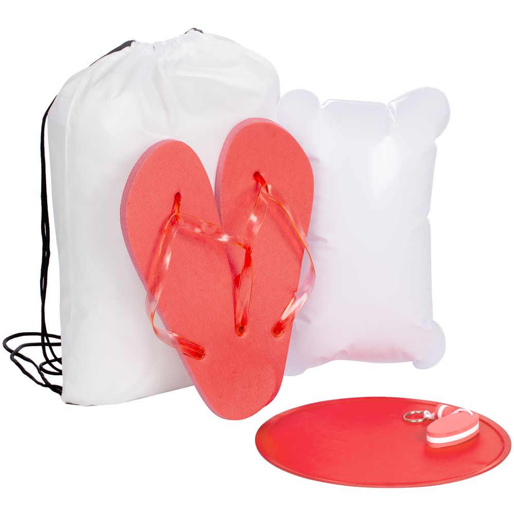 Материал: тарелка, рюкзак - полиэстер; подушка - ПВХ; брелок - вспененный полиуретан; вьетнамки - ЭВА, ПВХ