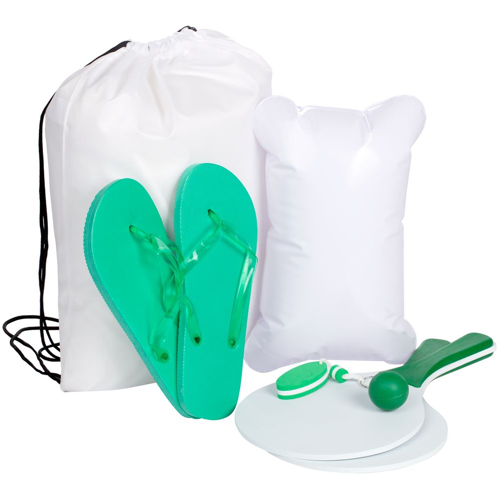 Материал: тарелка, рюкзак - полиэстер; подушка - ПВХ; брелок - вспененный полиуретан; вьетнамки - ЭВА, ПВХ