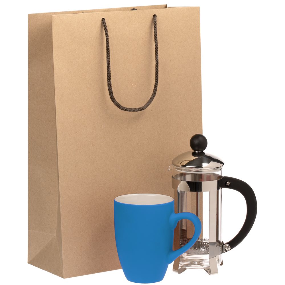 Материал: покрытие софт-тач; кружка - фаянс; френч-пресс - боросиликатное стекло, пластик, нержавеющая сталь