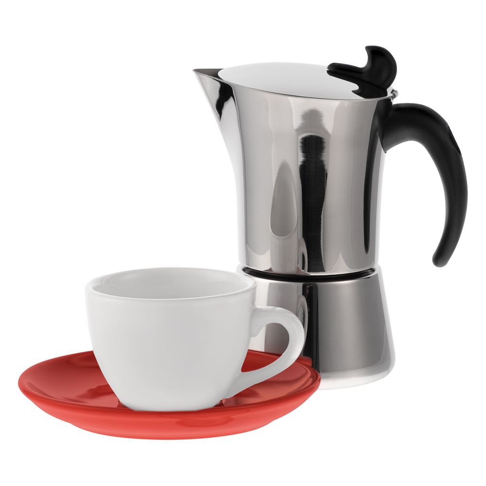 Размер: кофеварка: высота 17,3 см, диаметр 9 см, ширина с ручкой 15 см; чашка: диаметр 8,4 см, ширина с ручкой 10,9 см, высота 6,2 см; блюдце: 15х1,9 см; коробка 16,3х10,6х15,4 см; пакет: 42х34,5х15 см