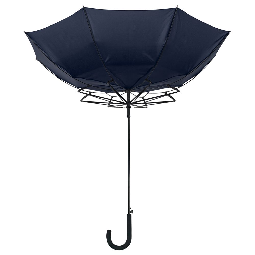Зонт снабжен системой защиты от ветра. Если при экстремальных порывах ветра купол выгибается, механизм пружинит, не давая спицам погнуться или сломаться.