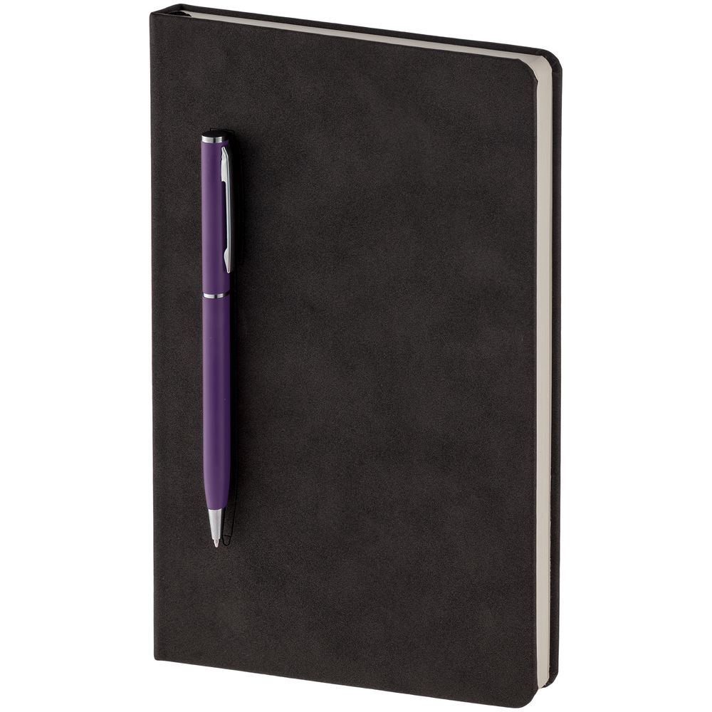 Блокнот Magnet Chrome с ручкой, черный с фиолетовым