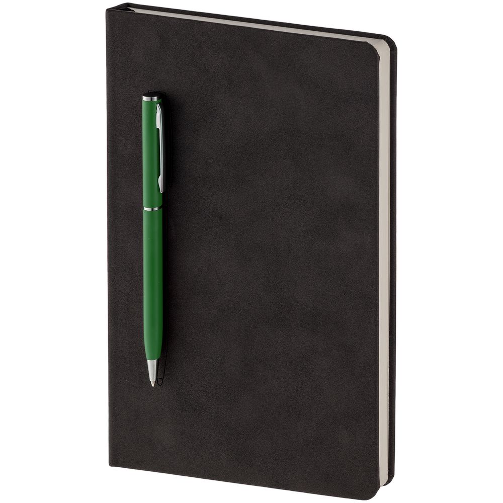 Блокнот Magnet Chrome с ручкой, черный с зеленым