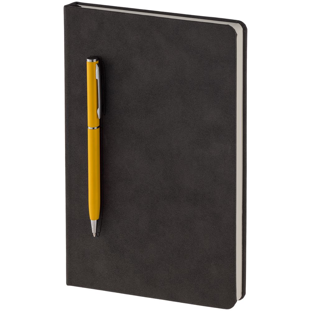 Блокнот Magnet Chrome с ручкой, черный с желтым