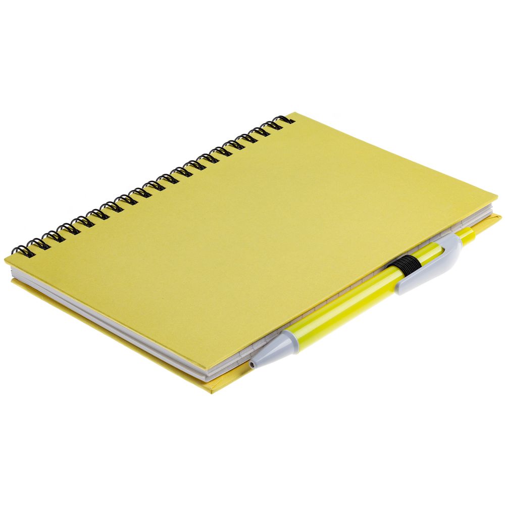 Блокнот с твердой обложкой, блок в линейку из вторично переработанной бумаги, 80 листов плотностью 70 г/м². В комплекте ручка с синими чернилами. Поставляется в полиэтиленовом пакете.