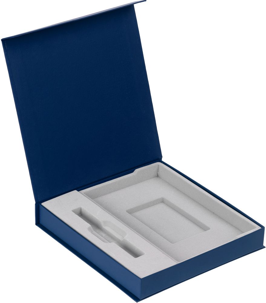 Подарочная упаковка для ежедневника 2х13,5х21 см и ручки длиной 15 см. Коробка из переплетного картона, кашированного дизайнерской софт-тач бумагой Senzo, с одной створкой на магните и флокированным ложементом.