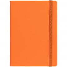 Ежедневник с полутвердой обложкой выполнен из материала Nice Touch, оранжевый ОО, и дополнен резинкой шириной 1 см и ляссе оранжевого цвета.