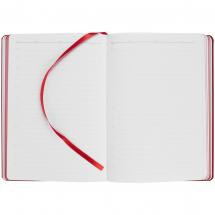 Ежедневник с твердой обложкой, выполнен из материала Nice Touch, красный РР, дополнен резинкой с лейблом из материала Soft Touch и ляссе в цвет обложки. Блок 985, без календарной сетки: