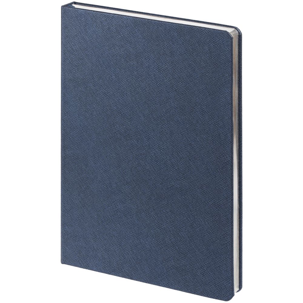 Ежедневник с твердой обложкой и серебристым обрезом, выполнен из материала Saffian, синий НН, дополнен ляссе в цвет обложки. Блок без календарной сетки:
