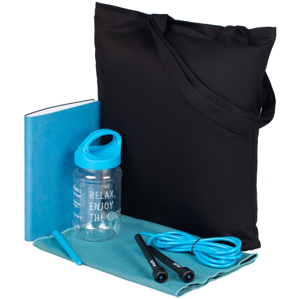 Материал: гантель - сталь, винил; скакалка - ПВХ, пластик; полотенце - полиэстер; ежедневник - искусственная кожа; ручка - пластик; сумка - хлопок 100%, плотность 220 г/м²