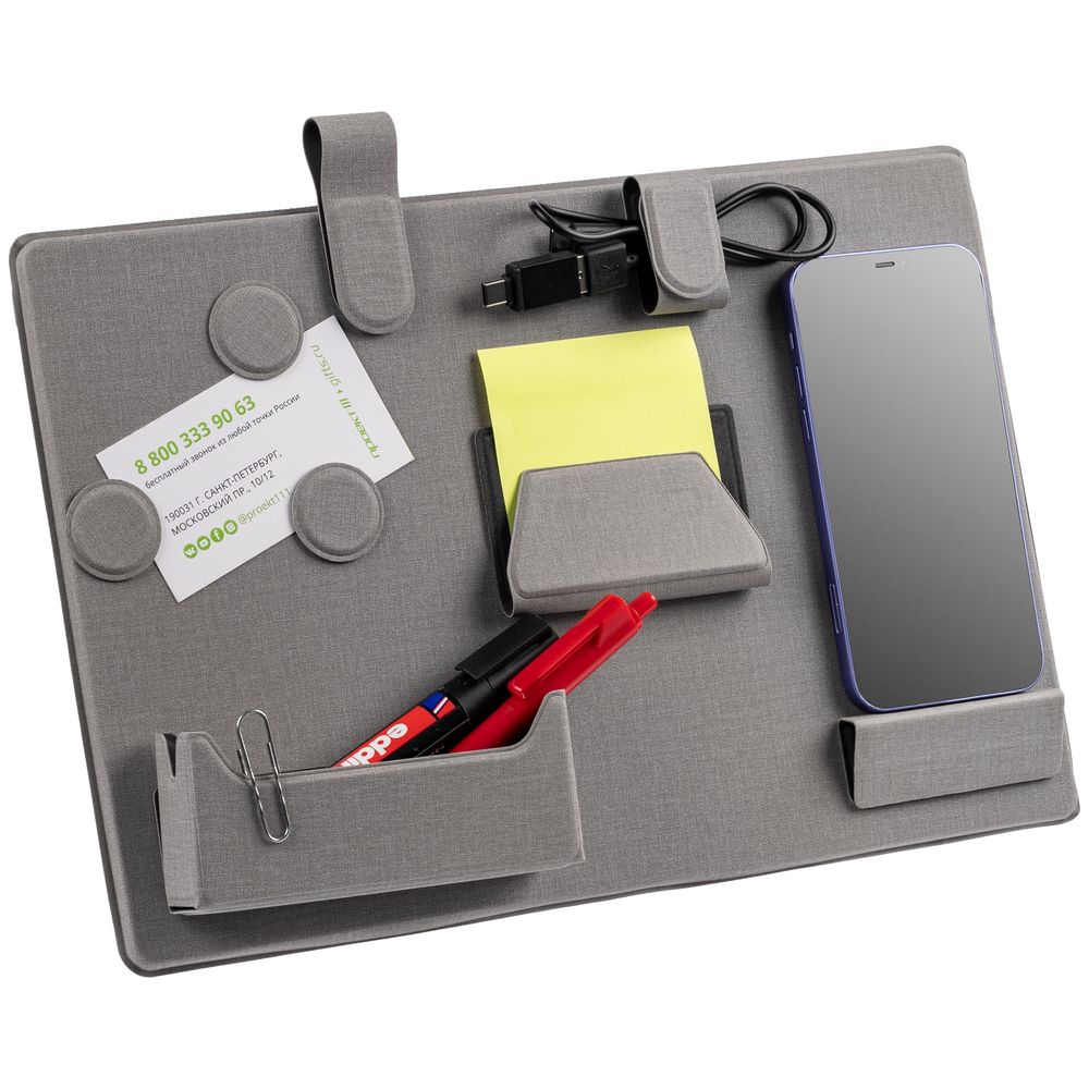 Настольный органайзер с беспроводной зарядкой Oiro, серый