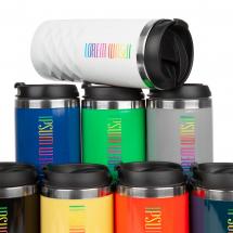 Двухслойная конструкция из пластика снаружи и пищевой нержавеющей стали внутри. Герметичная завинчивающаяся крышка с откидным клапаном для питья.