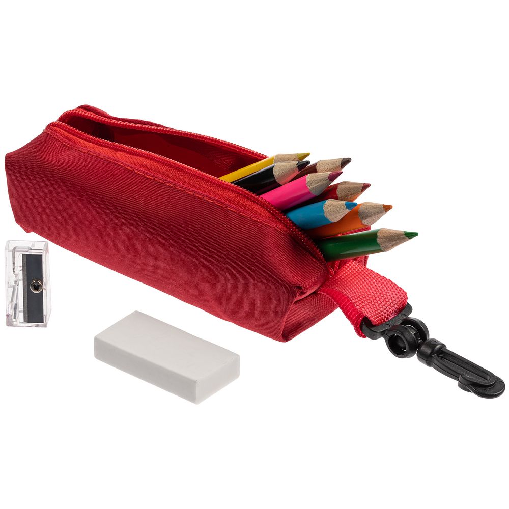 Размер: пенал: 11х5х3 см; карандаш 8,7х0,5 см; ластик 4х0,5х2 см; точилка: 2,5х1х0,8 см