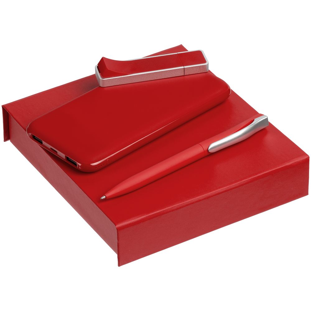 Материал: аккумулятор, ручка - пластик, покрытие софт-тач; флешка - металл, пластик, покрытие софт-тач; переплетный картон